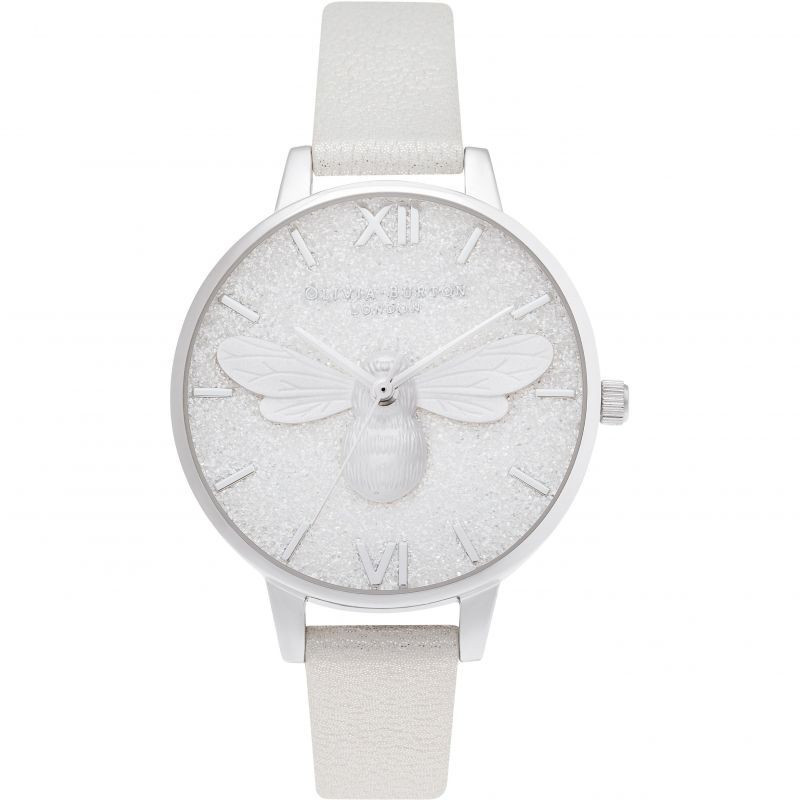 Женские часы Olivia Burton Glitter Dial Demi Dial Pearl Bee, Shimmer Pearl & Silver Watch OB16FB20