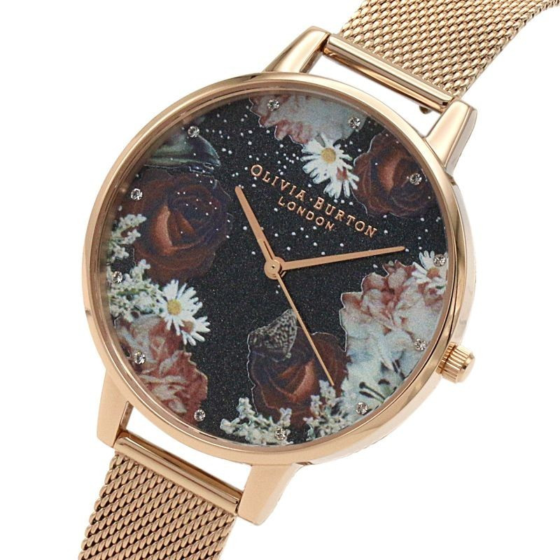 Женские часы Olivia Burton Winter Blooms Big Dial Rose Gold Mesh Watch OB16WG80